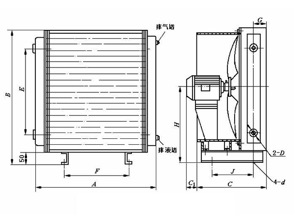FL型油冷卻器是液壓系統(tǒng)常用的一種空氣熱交換器。采用環(huán)境空氣作為冷卻源,用來(lái)冷卻管內(nèi)熱油,屬于風(fēng)冷式空氣冷卻器,以“風(fēng)冷”的第一個(gè)字母命名,以換熱面積作為后綴。如FL-5,即表示該型號(hào)為風(fēng)冷形式,換熱面積為5平方米。