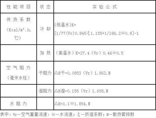 注:1:表中示散熱面積均為二排結構面積,其余四排,六排結構之散熱面積分別為×2,×3既得;
